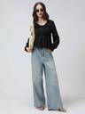 A sleek, versatile black top with a cinched waist to flatter every silhouette, Classic black color pairs with any bottoms, making it a go-to piece for work, weekends, and evenings.