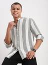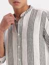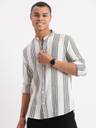 SHOWOFF Men's Long Sleeves Mandarin Collar Vertical Stripes White Shirt