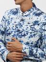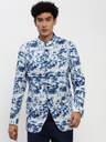 Men Printed Bandhgala Party Blazer (Blue, White)
