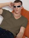Men Solid V Neck Cotton Blend Green T-Shirt