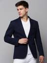 Men Solid Single Breasted Casual Blazer (Dark Blue)
