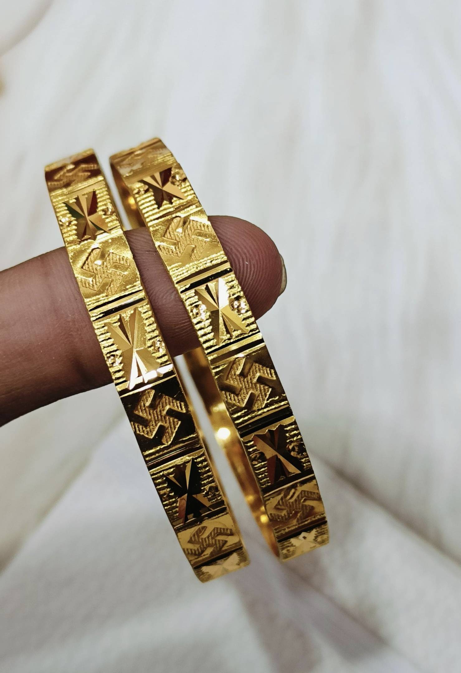 Set of 2 Latest One Gram Gold Plated Traditional Bangles for Women and Girls