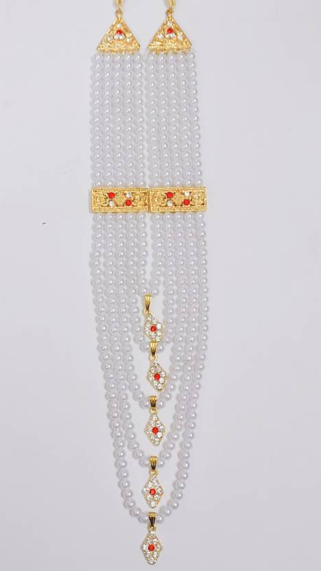 Make your own style statement by wearing this long multi layers moti mala necklace from Raadhe creation. its best pick for men's, especially for the grooms. club it with sherwani or ethnic attire for the perfect look. Brides are upping their game as it is, but grooms are no less too! Here are some cool groom necklace which spotted some unique accessories which really stood out! So get inspired if you have your wedding coming up and take a leaf or two out of this groom necklace! Add elegance and beautify your personality manifold by wearing this Necklace Set.