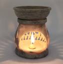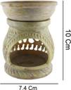 The Soapstone Essential Oil Burner has two pieces: The main pot (Lower Part) for placing the candle and a little dish/bowl (upper part) for water and Essential Oil (as shown in the image). The tea light throws beautiful gently dancing shadows through the stone lattice across the room and ceiling