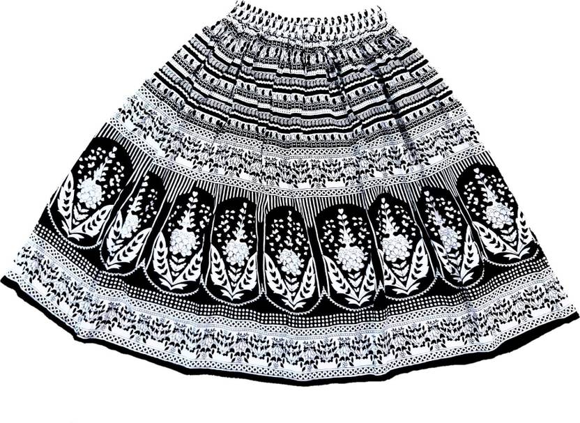 SHREE GOVIND TEXTILES Printed Girls Regular Black, White Skirt