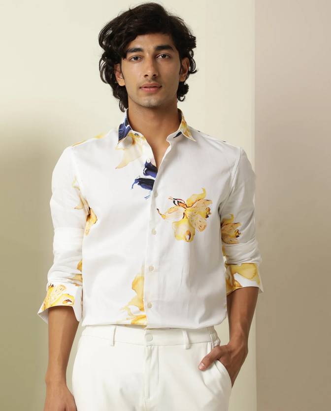 Men Regular Fit Floral Print Built-up Collar Party Shirt