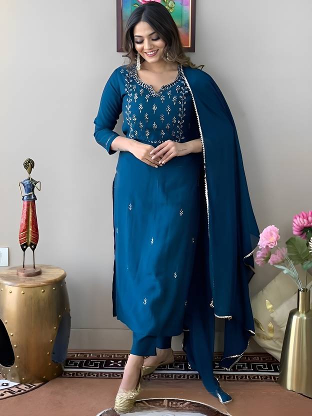 An Embroidery Kurti and Pant with Dupatta Set is a sophisticated and stylish outfit that combines the elegance of traditional embroidery with the comfort and modern flair of a coordinated set. Perfect for festive occasions, parties, or cultural events, this ensemble offers a refined yet fashionable look. The set typically includes a beautifully embroidered kurti, stylish pants, and a matching dupatta, all designed to create a harmonious and chic outfit.