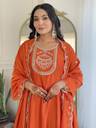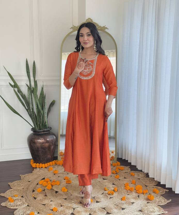 Upgrade your ethnic collection with this exquisite Women's Orange Vichitra Silk Embroidered Straight Kurta Set, crafted for elegance and comfort. Made from premium Vichitra silk fabric, the kurta features intricate embroidery that enhances its beauty. The straight-cut silhouette flatters all body types, making it ideal for festive and formal occasions.