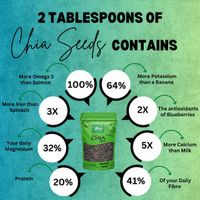 With high dietary fibre content, these chia seeds help promote smooth digestion and provide a lasting feeling of fullness after eating. This means you can stay satisfied longer between meals while also gently supporting your digestive system’s regularity—ideal if you’re seeking more balance in your everyday diet.