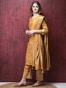 Shree Women Cotton Jacquard Mustard Kurta Comfort Pant Dupatta Woven Kurta, Trouser/Pant & Dupatta Set