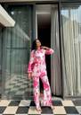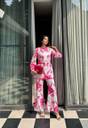 Add a refreshing twist to your wardrobe with this trendy white and pink co-ord set, beautifully adorned with quirky flamingo and floral prints. Crafted in soft, breathable cotton-blend fabric, this two-piece outfit includes a straight-cut top with flared sleeves and matching wide-leg pants for an effortless fusion of comfort and modern style.