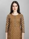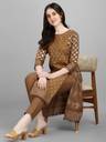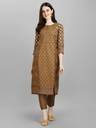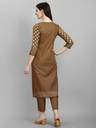 Boasting a round neck and three-quarter sleeves, the kurta from this set is thoughtfully designed for ease of wear and comfort. The round neckline provides a clean, streamlined appearance, and the three-quarter sleeves offer a balanced look that works well with various body shapes. The sleeve length ensures you remain comfortable throughout the day, providing enough coverage while still feeling relaxed and cool. The accompanying pants provide a comfortable experience as well.