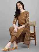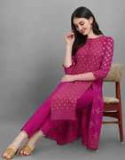 Flaunting an eye-catching pattern with subtle embellishments, this women’s kurta and pants set adds an elegant touch to your wardrobe. The print not only offers a modern and stylish look but also maintains a sense of timeless charm that can suit a variety of occasions. The lively prints complement the overall aesthetic, making it suitable for everyday wear or grand occasions alike.