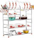 SHREE SINGHAL Utensil Kitchen Rack Steel Stainless Steel 5 Shelf Wall Mount Kitchen Racks | Dish Rack with Cutlery and Plate Kitchen Stand | Modular Kitchen Bartan Stand | Kitchen Organizer Items (31x 30inches)