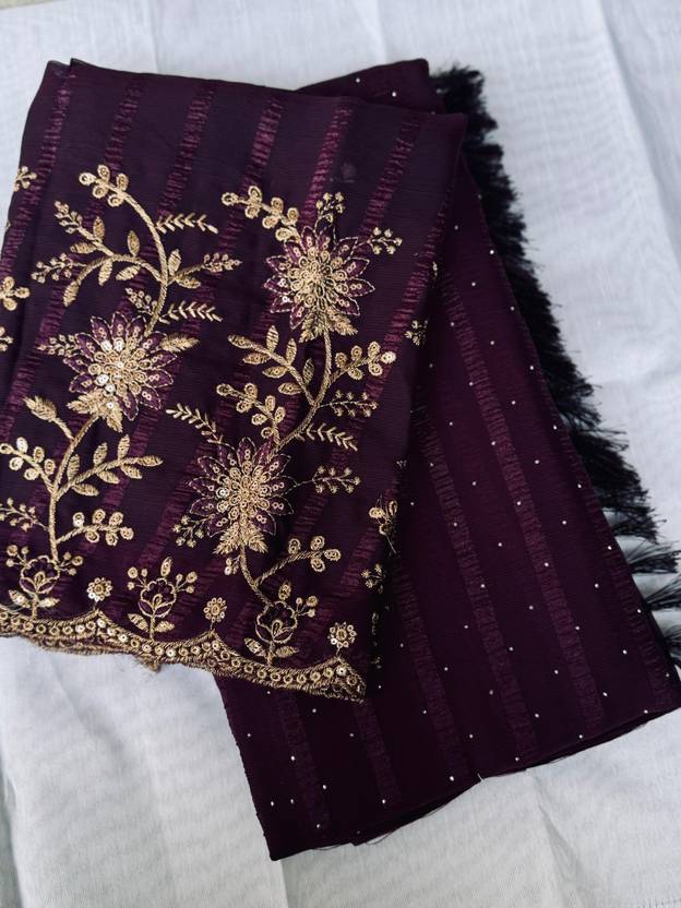 Embellished Bollywood Chiffon Saree (Purple)