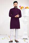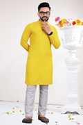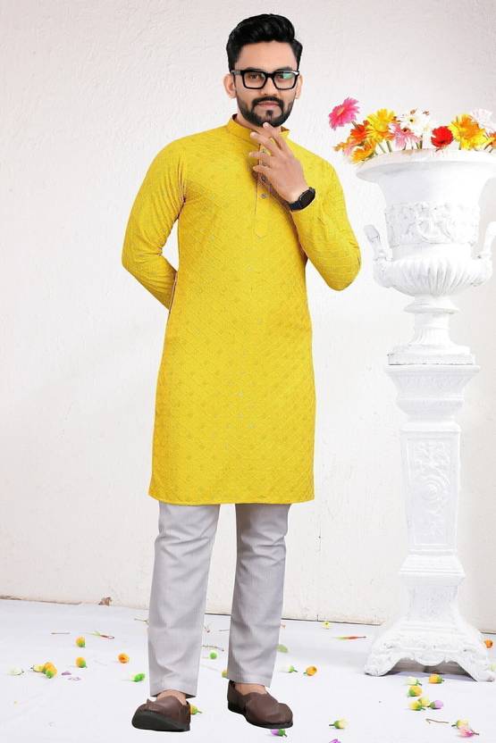 Look your ethnic best wearing this coloured kurta pyjama set. Made from Cotton regular-fit kurta pyjama set comprises a full-sleeved kurta and pyjama to complete your look.