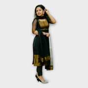 Elevate your ethnic wardrobe with this stunning women's ethnic set. Crafted from luxurious fabric, the set features intricate embroidery that adds a touch of elegance and tradition. The kurta boasts a flattering A-line silhouette with a beautifully embellished neckline. Paired with matching churidar pants, it ensures a comfortable yet stylish fit. The dupatta, adorned with delicate lacework, enhances the overall appeal. Perfect for festive occasions, weddings, and cultural celebrations. Available in vibrant colors, this ethnic set exudes grace and sophistication. Easy to care for and maintain, it combines tradition with contemporary fashion. An essential addition to any woman's ethnic collection.