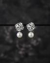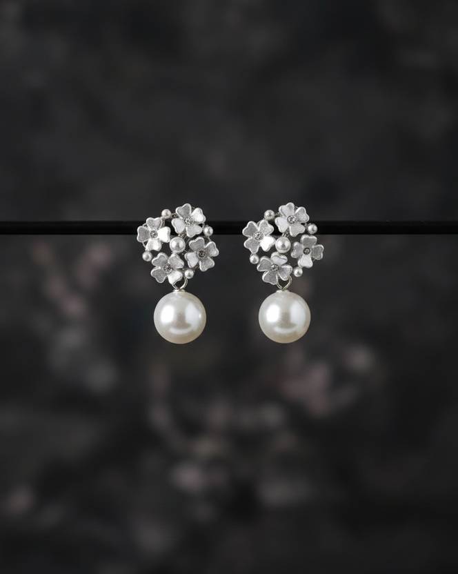 Floral Cluster Pearl Drop Earrings Metal Stud Earring