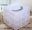 Feature: 100% brand new and high quality. 3-layers detachable desktop storage box design convenient for you storage and classify some small objects like ornaments Carrying handle on the top of box convenient for you to carry with Save storage space using this remarkable organizing container for all your precious accessories, trinkets, and small items. The trays contain multiple dividers to keep your items separated and neatly organized. It can be used to store sewing accessories, earrings, necklaces, beads, fingers ring,s or other small jewelry. It can also be used for storing fishing hooks, fish lure bait or another small tool kit. High-quality PP material can be stable and durable. Design Elements: Transparent Appearance, 3-Layers, Detachable DIY Storage Space Specifications: Item Type: Storage Box Material: PP Color: Random Handle Color: Random Size (L*W*H): 15*15*13cm/5.9*5.9*5.1 inch Layer Height: 4cm/1.6inch Package Content: 1 pcs Storage Box with 18 Grids