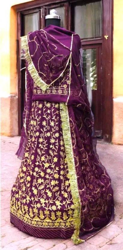 Shreemanji trading Embroidered Semi Stitched Rajasthani Poshak  (Purple)