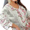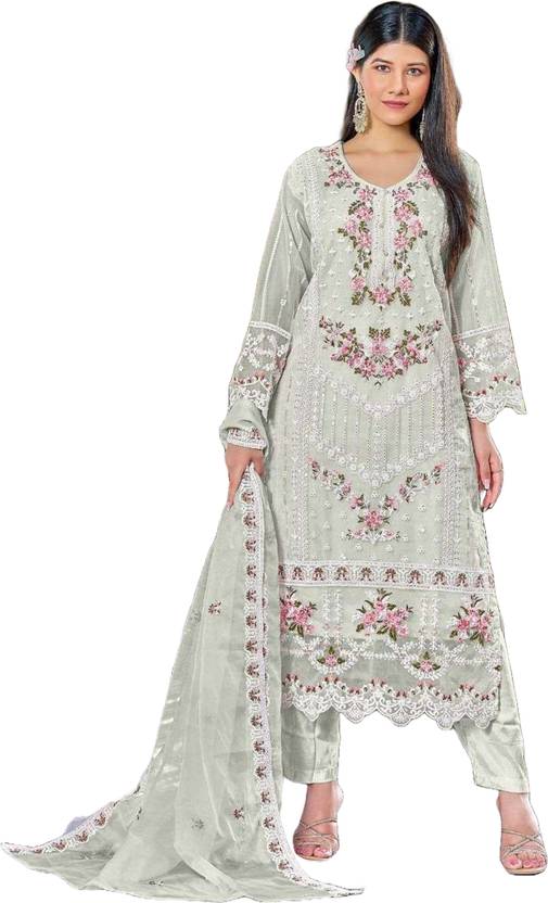 Top :- Organza Silk with Embroidery Work + Sequence Work + Hand Work, Bottom:- Santoon silk, Inner : Santoon silk,Dupatta :- Organza Silk With 4 side border Lace Work, Fabric:- Organza Silk, Santoon Silk Flare:- 1.60 Mtr (Note:- Back Side Is Plain) Package Content :- Top With Inner,Bottom, Dupatta Length :- Up To 48 , Size :- Max Up To 46 (Up To 3Xl ) ,Type :- Semi Stitched, Disclaimer :- Product color may slightly vary due to photographic lighting sources or your monitor setting