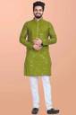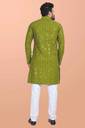 Elevate your ethnic wardrobe with this Men's Embroidered Cotton Blend Straight Kurta in a rich dark blue hue. Crafted from a soft and breathable cotton blend fabric, this kurta ensures comfort all day long, making it perfect for festive occasions, family gatherings, or casual outings.