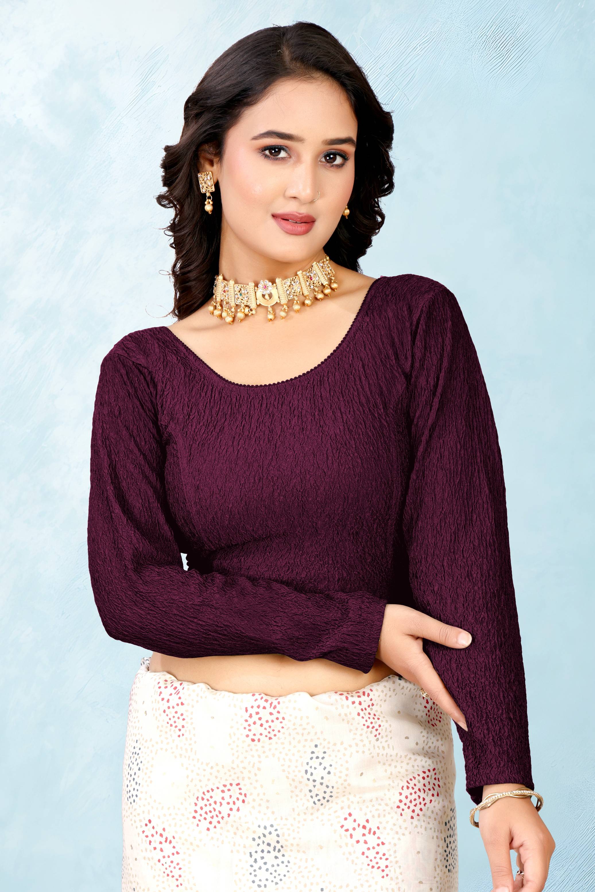 Satin solid Wine Color Saree with blouse