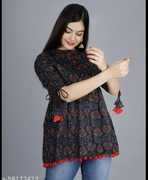 ShreeShyam Handicraft Casual Printed Women Black Top