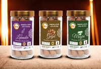 Boasting a thoughtful blend of gugal, mogra, and lavender, this combo brings together fragrances with distinctive personalities. Gugal carries a deep, resinous character often linked with spiritual practices, while mogra contributes a floral sweetness that refreshes the senses. In addition, lavender provides a soothing note that brings calm and balance. Courtesy of its charcoal-free composition, this combo produces a clean burn, keeping the atmosphere light and pleasant.