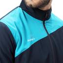 Fuller cut for complete comfort.The pattern inside the fabric returns infraded energy to your body.Smooth tricot knit exterior with a brushed interior for a soft comfort & warmth.Secure, zip hand pockets.Stretchy ribbed trim on coller ,cuffs & bottom hem.This technology repels water without sacrificing breathability.4-way stretch constructions moves better in every direction.Secure ,zip hand pockets.Contrast blue panel on track upper and bottom.Fabric composition: 100% Polyester.