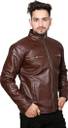Men Solid Leather Jacket