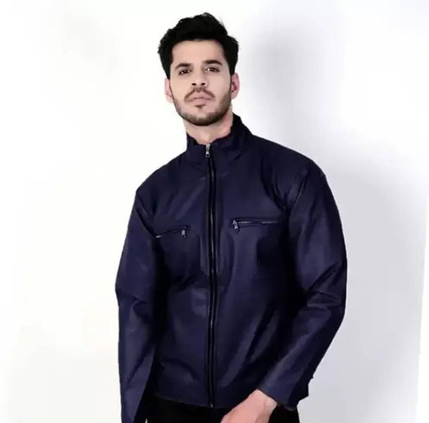 Men Solid Leather Jacket