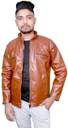 This stylish regular fit jacket in the display has full sleave and stand collar. Inside one pocket and branded zippers, this faux leather jacket is light in weight and will ensure cofort all time.