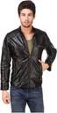 Men Solid Leather Jacket