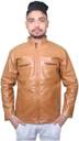 This stylish regular fit jacket in the display has full sleave and stand collar. Inside one pocket and branded zippers, this faux leather jacket is light in weight and will ensure cofort all time.