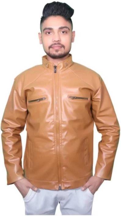 Men Solid Leather Jacket
