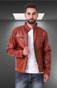 Men Solid Leather Jacket