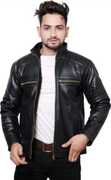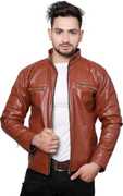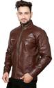 This stylish regular fit jacket in the display has full sleave and stand collar. Inside one pocket and branded zippers, this faux leather jacket is light in weight and will ensure cofort all time.