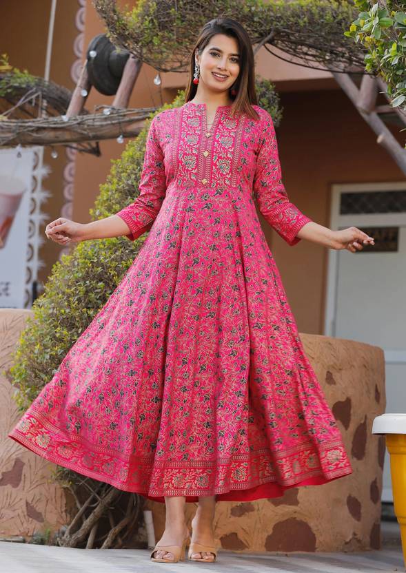 Shri Shayam Creation Women Printed Anarkali Kurta (Pink)