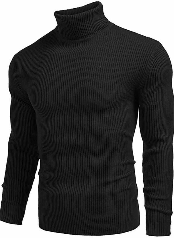 SHRIGANESH ENTERPRISES Solid Turtle Neck Casual Men Black Sweater