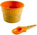 Shrih Plastic Dessert Bowl Ice Cream Waffle Cone Bowls Spoons Cups Set (Pack of 2, Beige, Orange)
