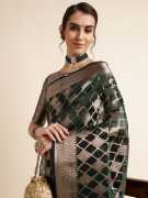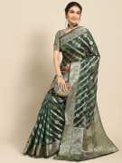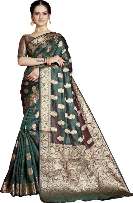 SHRIMAY Floral Print Bollywood Net, Organza Saree (Dark Green)