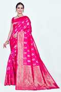 SHRIMAY Printed Bollywood Cotton Blend Saree (Pink)