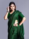 SHRIMORI Solid/Plain Bollywood Silk Blend Saree (Dark Green)