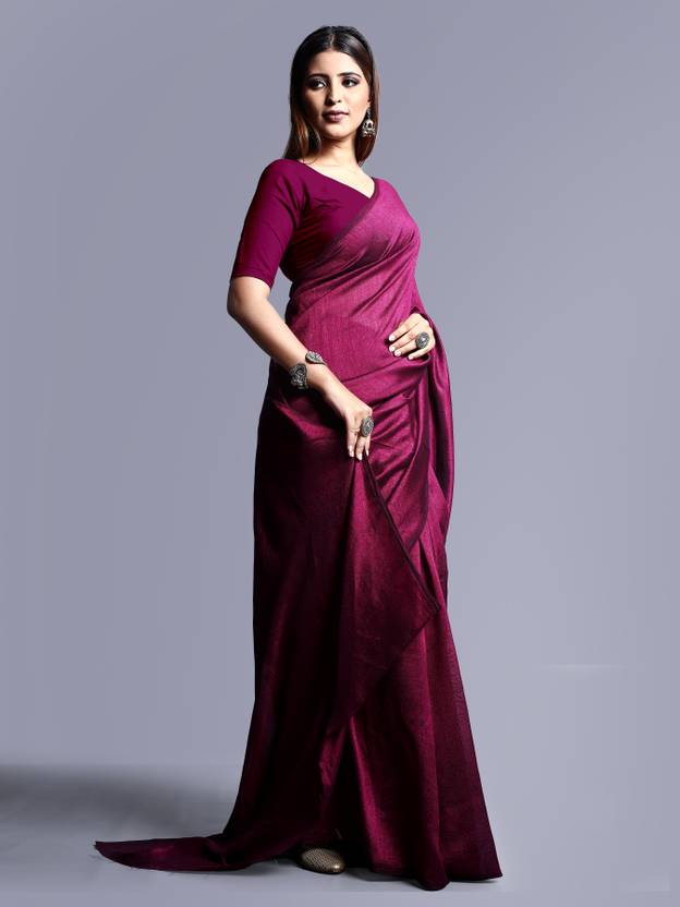 SHRIMORI Solid/Plain Bollywood Silk Blend Saree (Magenta)