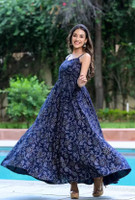 With its full-length style, this dress epitomises classic sophistication. With its beautiful long length, it creates a shape that is both elegant and lengthy. It's ideal for summer events, outdoor weddings, and strolls along the beach since the sleeveless design keeps you cool and comfortable. The flared style of the dress adds an exciting element to each movement, exuding elegance and grace.