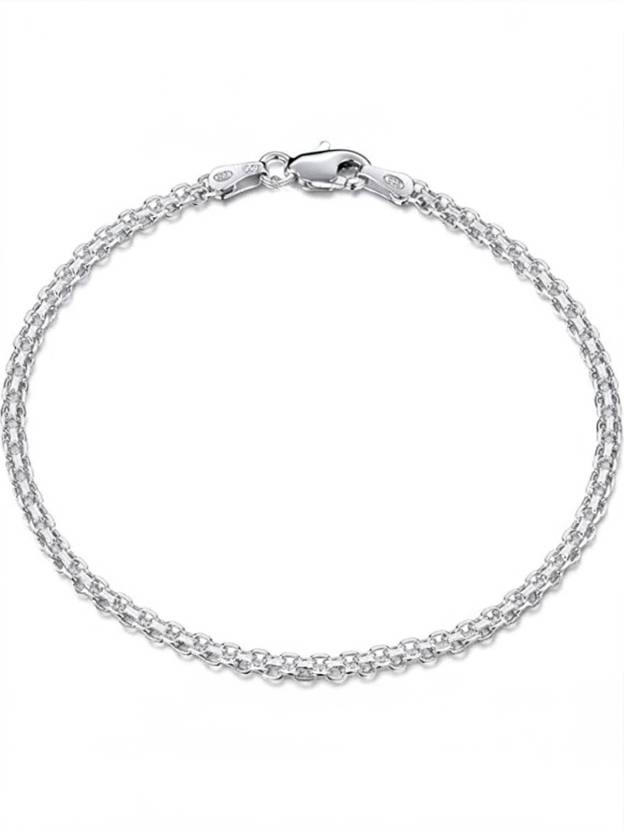 Crafted from a silver base material, this bracelet is plated with sterling silver for a polished and refined finish. Furthermore, the plating enhances durability while resisting tarnishing, ensuring a lasting shine. Smoothly designed links and a sleek surface add to its timeless appeal, making this bracelet a versatile addition to any jewellery collection. In addition, combining elegance with strength, this bracelet retains its charm over time.