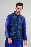 Enhance your ethnic look instantly with this waistcoat. The item follows a sleeveless style and features a mandarin collar with a button placket on the front, welt pockets and an eye-catchy all-over print. Crafted using excellent cotton jacquard fabric to render a remarkable look to the wearer. Country of Origin: India"