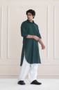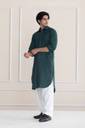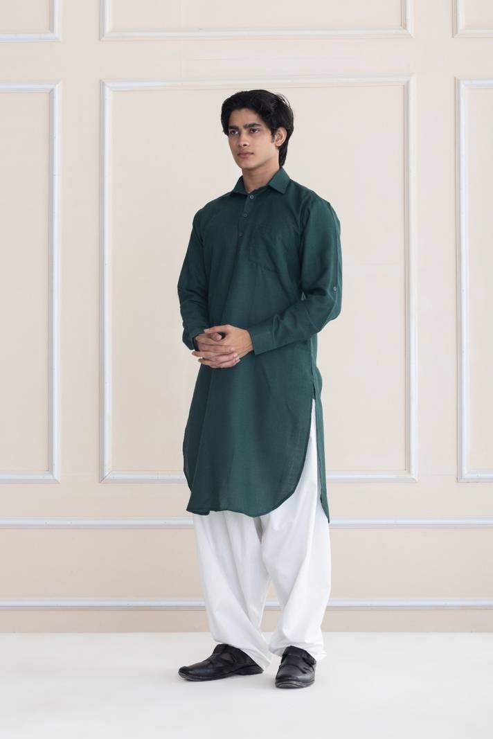 SHROBH Men Solid Cotton Blend Pathani Kurta  (Dark Green)