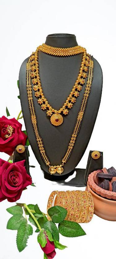 1 Chokar, 1 Kolhapur saaj, 1 Long Mangalsutra, 6 pic bangle 2.6, Nosering, 1 pair earing